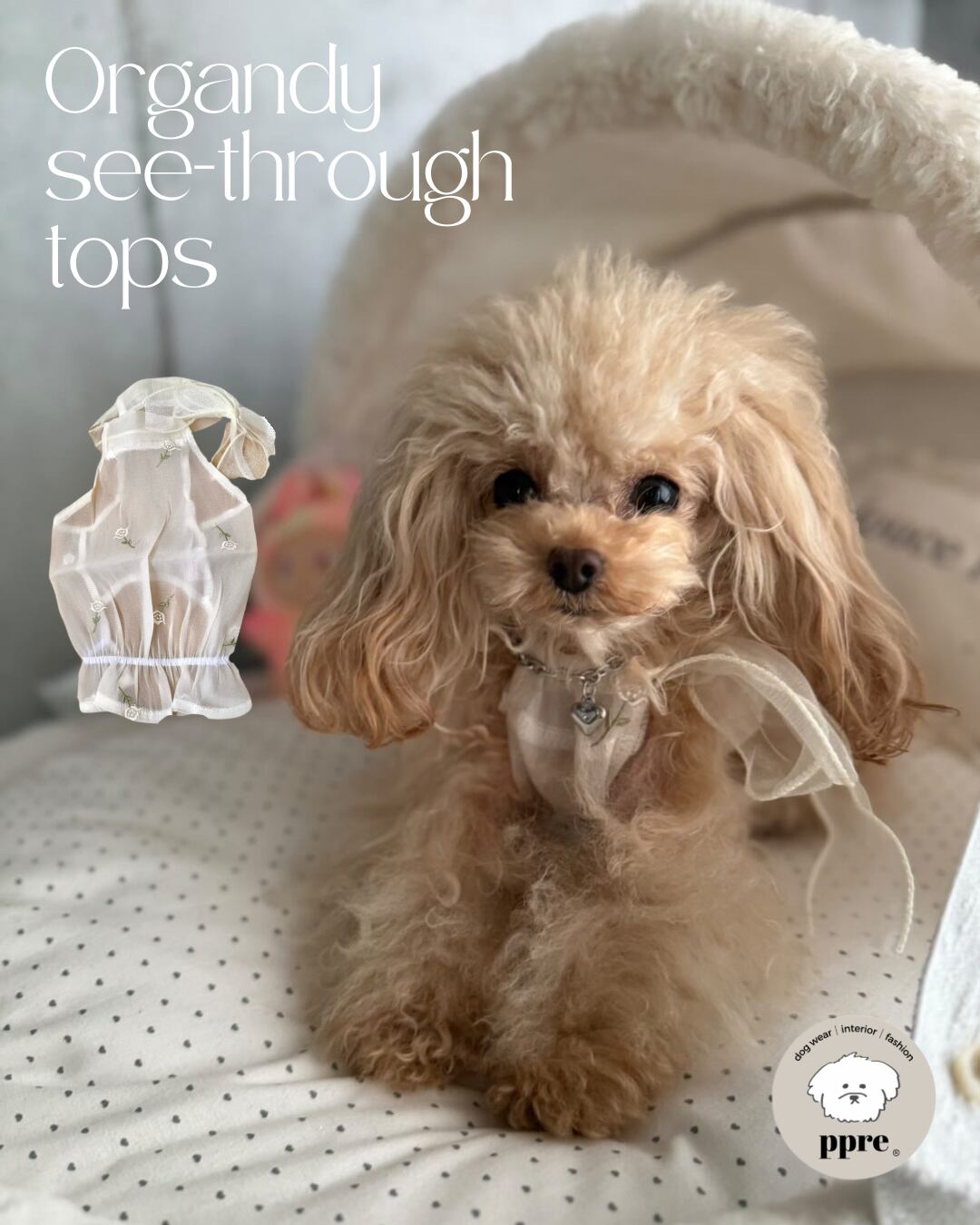オーガンジーリボン ペプラム トップス 犬服 ドッグウェア 春夏 ベスト シースルー ローズ バラ 薔薇 チュール フリル 花 フラワー