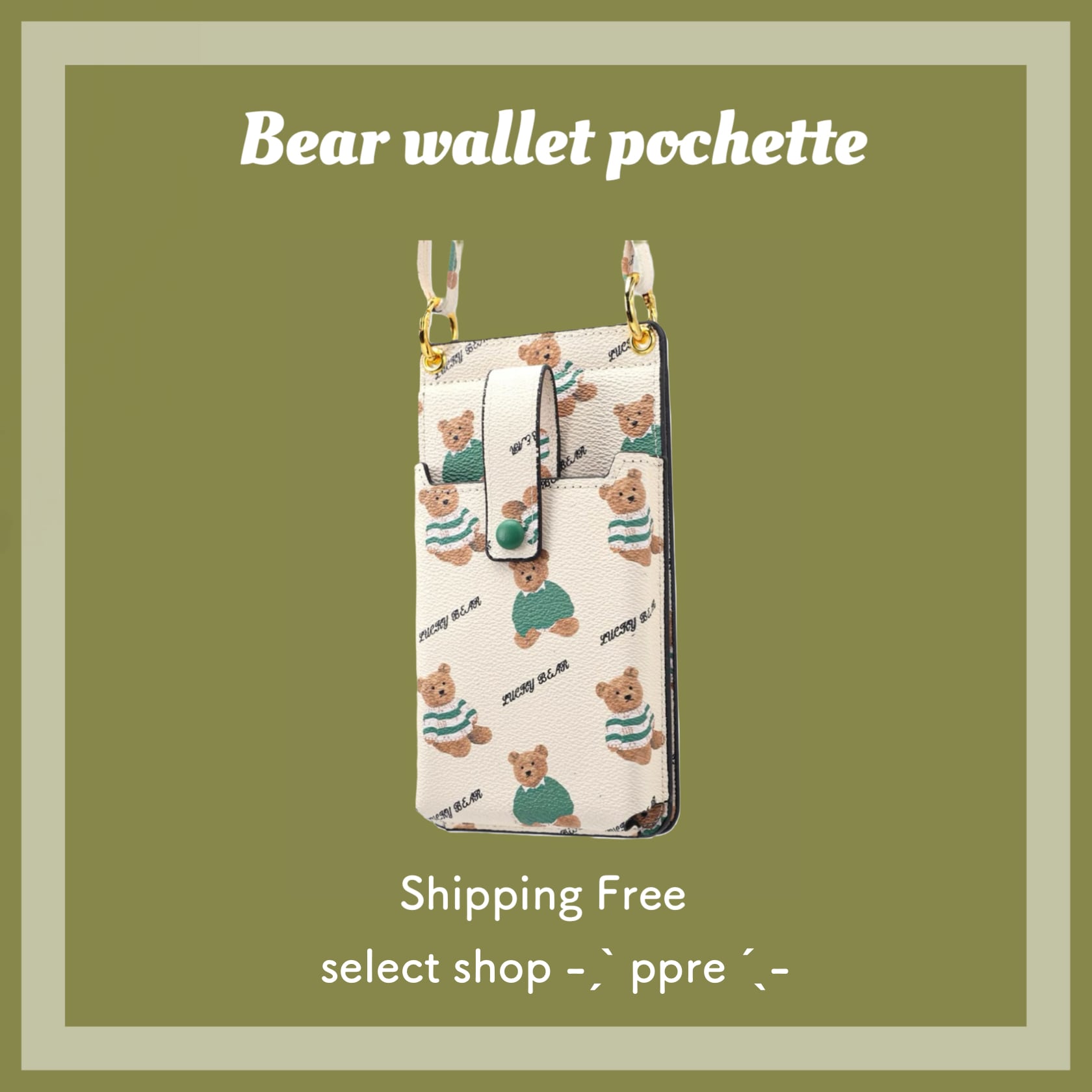 ベア マルチ お財布 ポシェット【グリーン】 レザー スマホ ウォレット コンパクト スリム