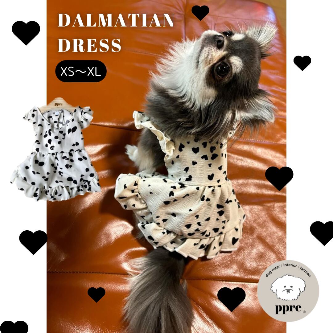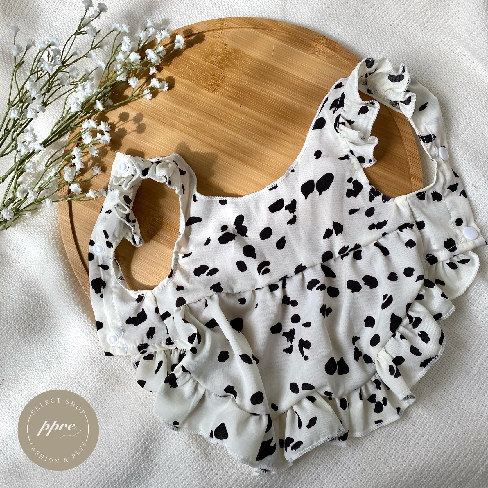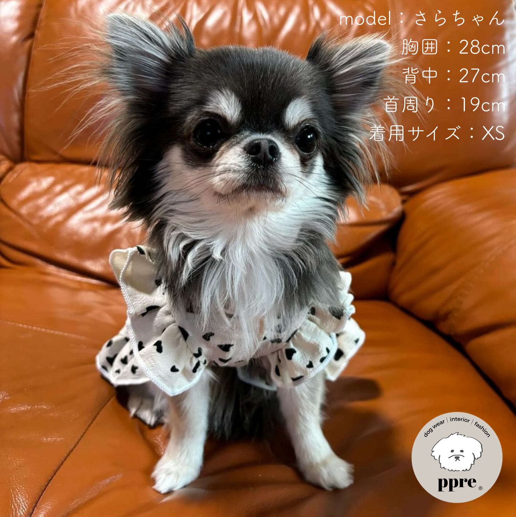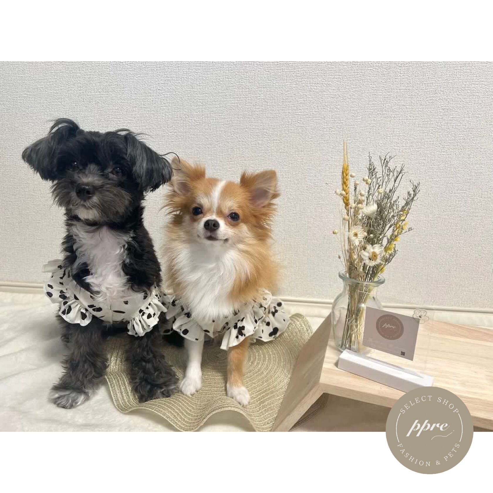 モノトーン ダルメシアン ワンピース 犬服 ドッグウエア ドット ノースリーブ 袖なし 春夏 フリル ナチュラル 襟レース フリル