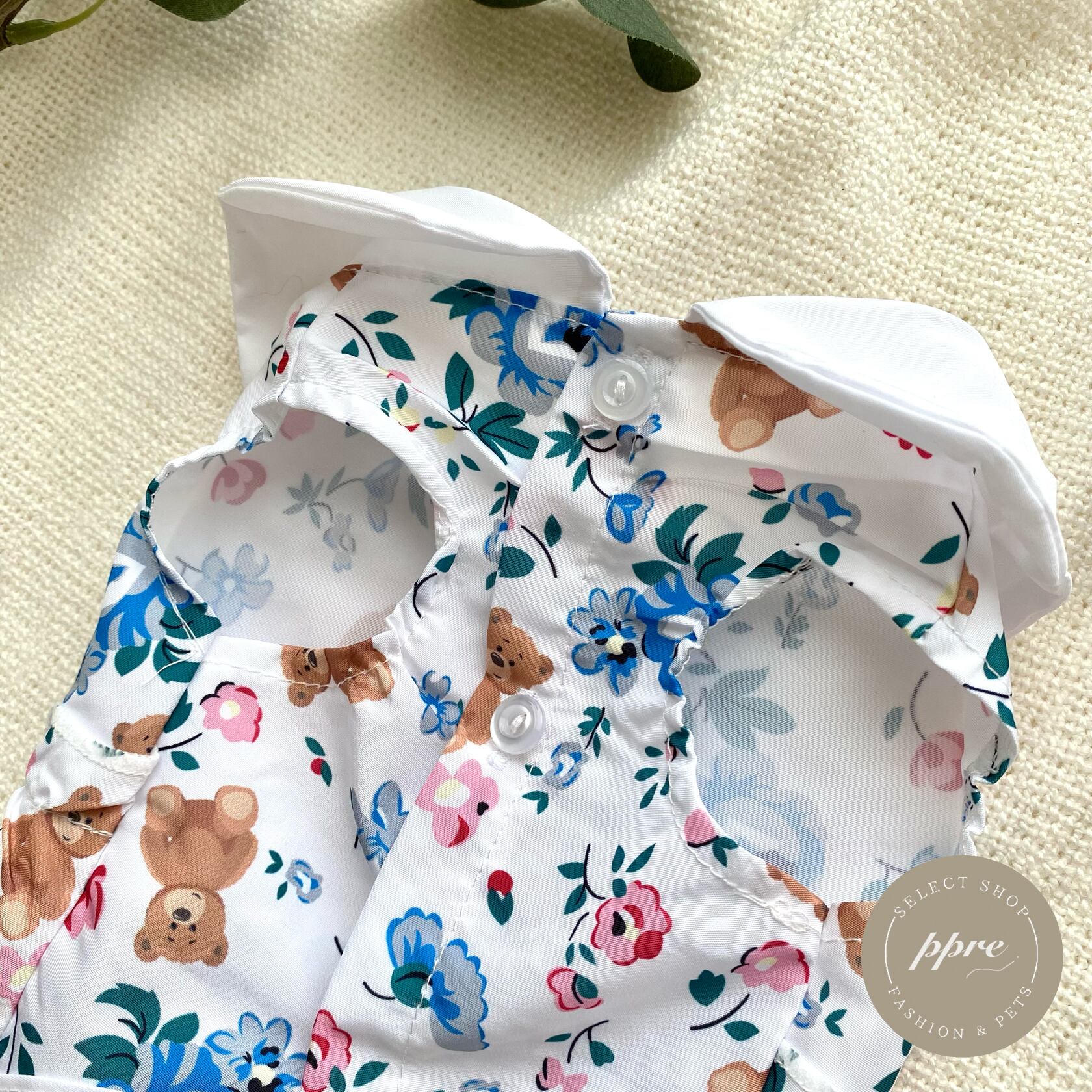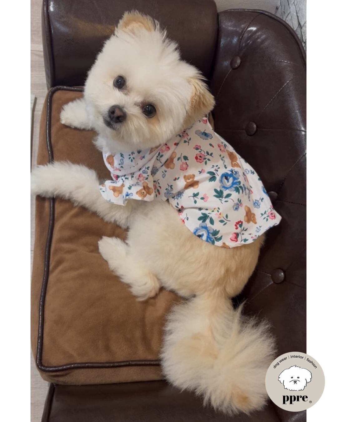 フラワー ベア ペアルック シャツ 犬服 ドッグウエア ワンピース ボタン くま 花柄 フリル
