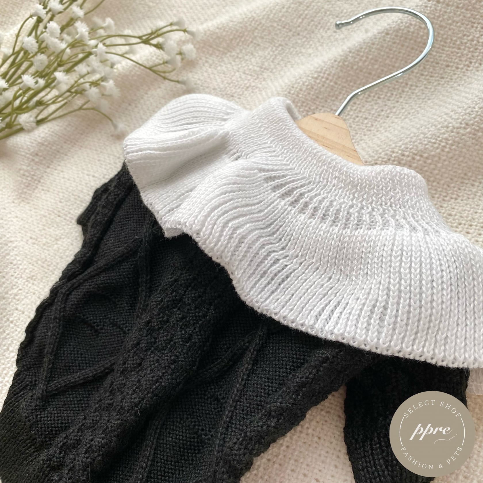 ビッグカラー クラシック デザイン ニット 犬服 ドッグウエア トップス 秋冬 モノトーン 白黒 ユニセックス おしゃれ 袖あり