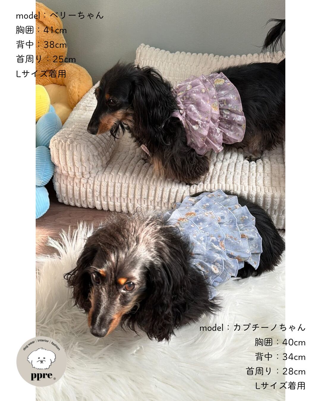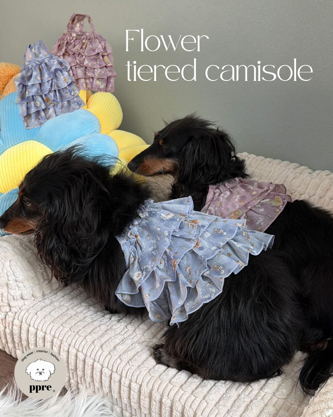 フラワー ティアード キャミソール トップス 犬服 ドッグウエア ナチュラル ノースリーブ かわいい クラシカル かわいい ガーリー シンプル 花柄 ユニセックス ペアルック シフォン