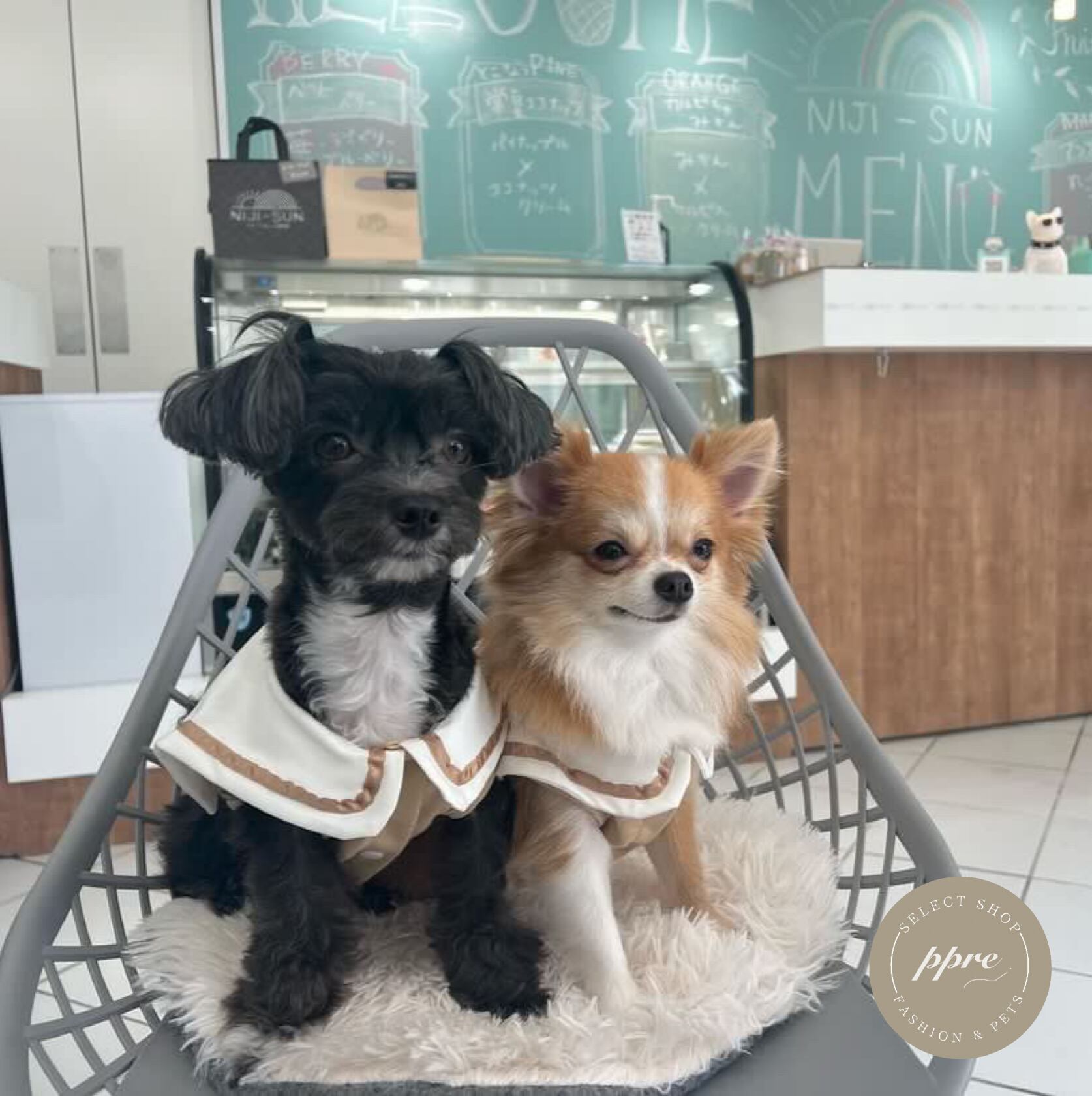 他のお洋服ではSでピッタリでも、このお洋服はSだとキツすぎる!ということが起こりうるため、必ず【サイズ表とワンちゃんのスリーサイズ】を照らし合わせてからご購入くださいませ。