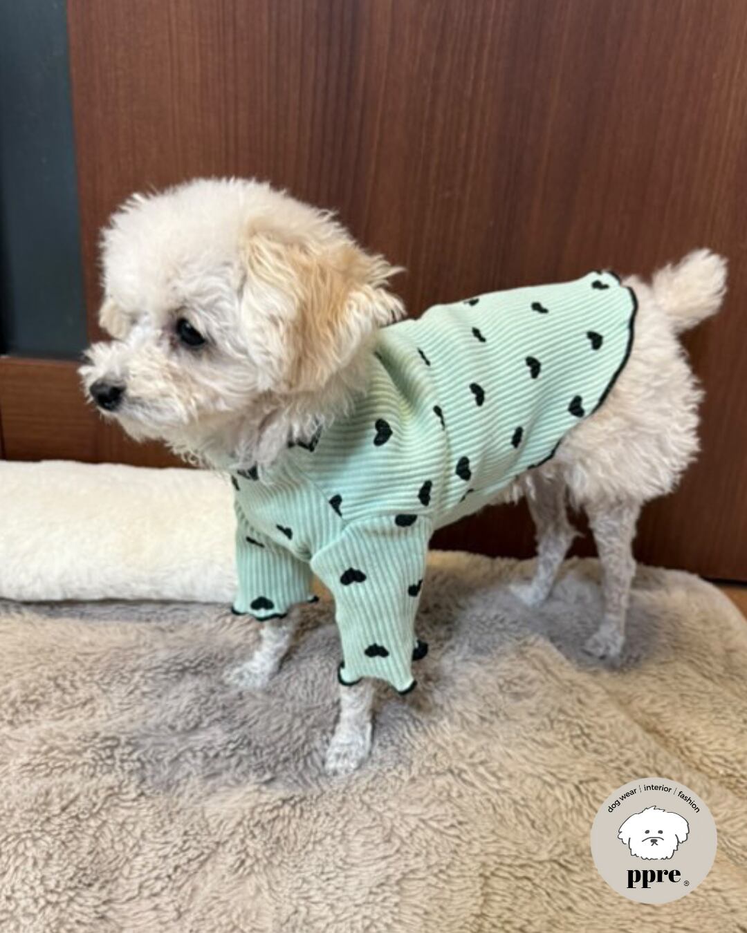 ハート ドット メロウ リブ トップス 犬服 ドッグウエア ガーリー シンプル ハイネック 水玉